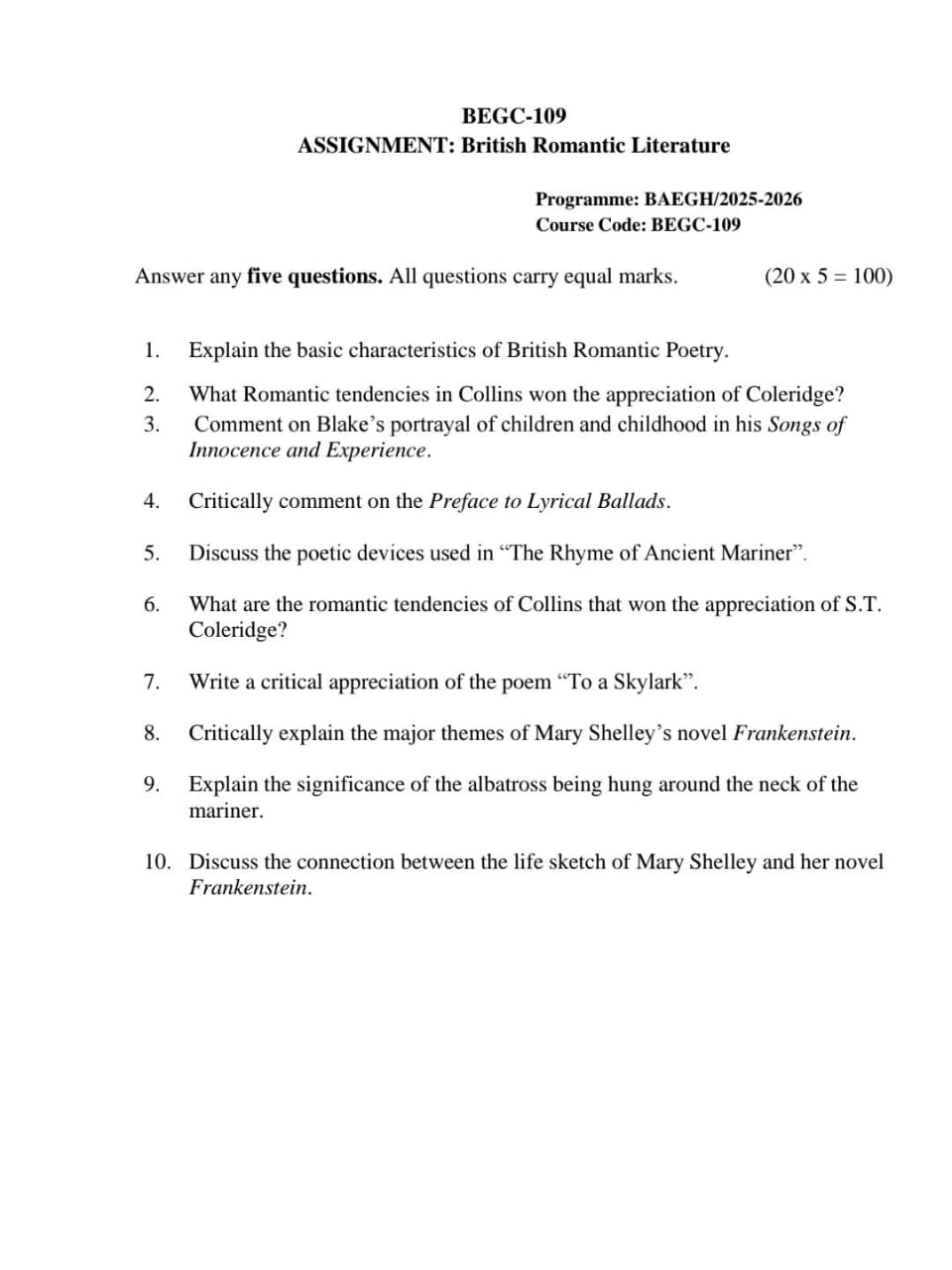 | SUBJECT CODE | BEGC-109 |
