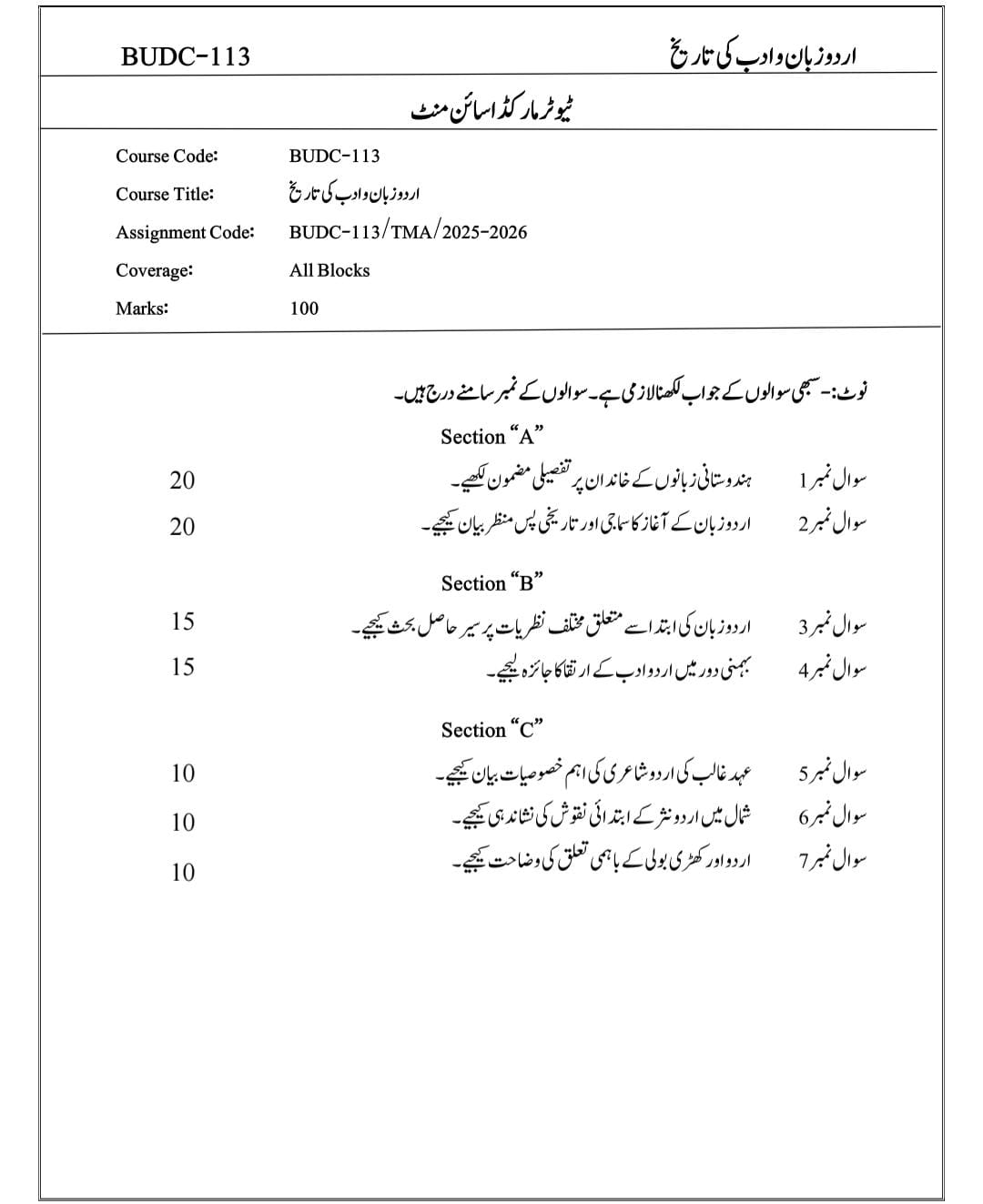IGNOU BUDC-113 SOLVED ASSIGNMENT 2025-26