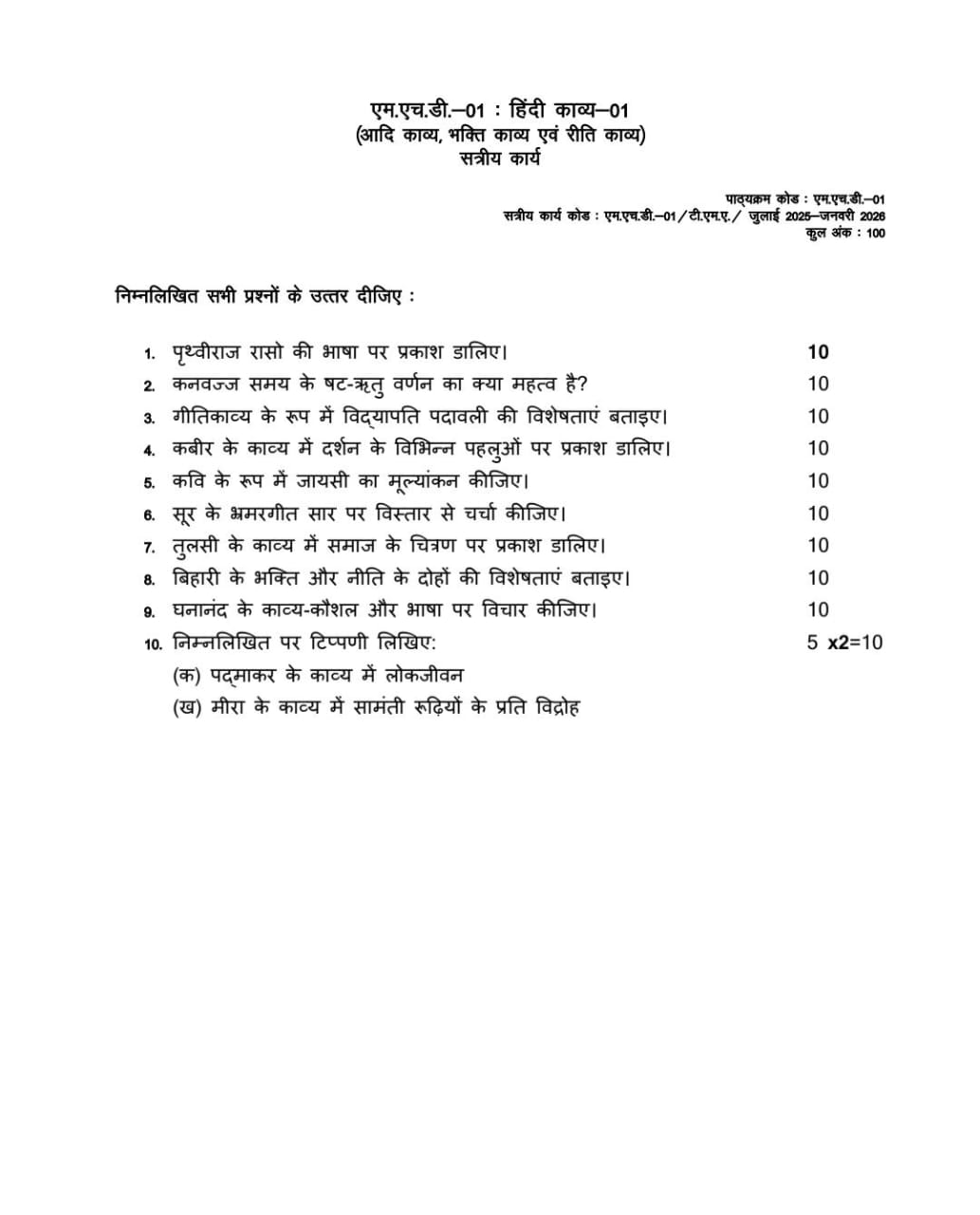 IGNOU MHD-01 SOLVED ASSIGNMENT 2025-26 HINDI