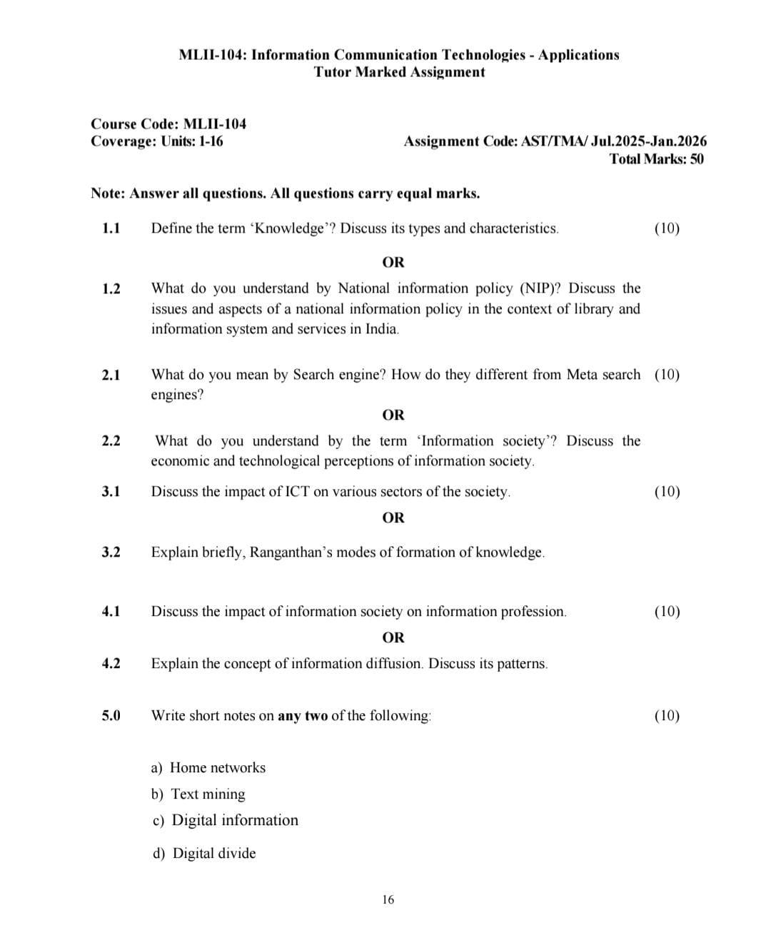 IGNOU MLII-104 SOLVED ASSIGNMENT 2025-26
