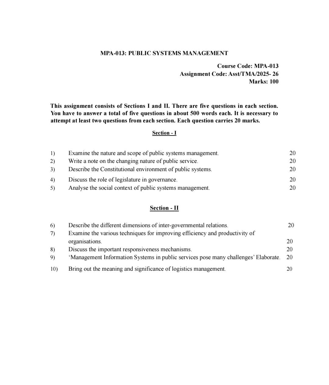 IGNOU MPA-013 SOLVED ASSIGNMENT 2025-26 ENGLISH